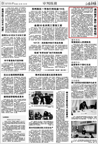 江蘇法制報截圖 近日“南通瑞東會計師事務(wù)所”的名字,不斷出現(xiàn)在《新華網(wǎng)》《江蘇法制報》的報道之中。一個小會所名字出現(xiàn)到主流新聞媒體中,實屬罕見。這要從我所承辦的一起破產(chǎn)案件說起。 2020年8月24日,通州區(qū)人民法院受理南通某瑞公司“執(zhí)轉(zhuǎn)破”一案,并指定南通瑞東會計師事務(wù)所擔(dān)任管理人。這是一個典型的企業(yè)無資產(chǎn)、無賬冊資料、無經(jīng)營場所的三無企業(yè),債權(quán)人看不到任何受償希望的破產(chǎn)案件。 南通瑞東會計師事務(wù)所由多名專業(yè)人員組成的清算組,主任會計師吳林海親自帶隊。在承辦法院的指導(dǎo)下,管理人從不動產(chǎn)登記中心到車管所,再到銀行,四處奔波,全方位開展資產(chǎn)調(diào)查工作,可惜仍未能發(fā)現(xiàn)有價值的財產(chǎn)信息。管理人團(tuán)隊苦苦尋思突破口,仔細(xì)尋找蛛絲馬跡,終于在稅務(wù)局申報表和市場監(jiān)督部門的企業(yè)檔案中發(fā)現(xiàn)了有益線索。原來債務(wù)人公司季某等三股東出資為認(rèn)繳制,全國工商企業(yè)信息查詢網(wǎng)顯示,三股東均未實際出資。根據(jù)企業(yè)進(jìn)入破產(chǎn)程序股東認(rèn)繳出資加速到期的法律規(guī)定,讓這起案件柳暗花明! 2020年10月22日,管理人一紙訴狀,將三股東告上法庭在申請訴訟保全后,債務(wù)人企業(yè)無力提供訴訟保全保證保險金的情況下管理人毅然決然決定有管理人機(jī)構(gòu)自己先行墊付,申請法院進(jìn)行了保全保全。終于,身兼企業(yè)法定代表人、股東的季某出面了,但未發(fā)現(xiàn)他有履行能力。另外兩名不參與公司經(jīng)營的股東湯某、尹某一臉“委屈”:“都是季某惹的禍,公司不破產(chǎn),再多的錢砸下去都是‘無底洞’。但是法律是公正的,2020年12月21日,通州區(qū)人民法院判決三股東必須承擔(dān)出資義務(wù)。管理人負(fù)責(zé)人告知被告“股東出資是你們應(yīng)當(dāng)履行的義務(wù),拿不到錢的債權(quán)人才是真正的受害者!逼扔诜傻耐,2020年12月22日,“想通了”的湯某、尹某向管理人賬戶打來了20萬元,最終, 7名打工人員全額拿回血汗錢! “破產(chǎn)管理人專業(yè)、敬業(yè)和高效的工作,使我們的債權(quán)得到了全額受償,好高興……”1月29日,破產(chǎn)企業(yè)南通某瑞公司的債權(quán)人楊某等向管理人南通瑞東會計師事務(wù)所寄來感謝信,對管理人的辛勤付出表示由衷的感謝。 為債權(quán)人楊某代理執(zhí)行的律師感嘆:“破產(chǎn)案件中債權(quán)全額受償,我執(zhí)業(yè)二十多年來從沒見過。” 盡職、盡力、盡心、盡我所能,維護(hù)債權(quán)人的利益、維護(hù)法律的權(quán)威這是南通瑞東會計師事務(wù)所作為破產(chǎn)管理人一貫堅持的基本原則。所承辦案件得到債權(quán)人的認(rèn)可,得到法院的肯定,這是管理人的最大榮譽。 |